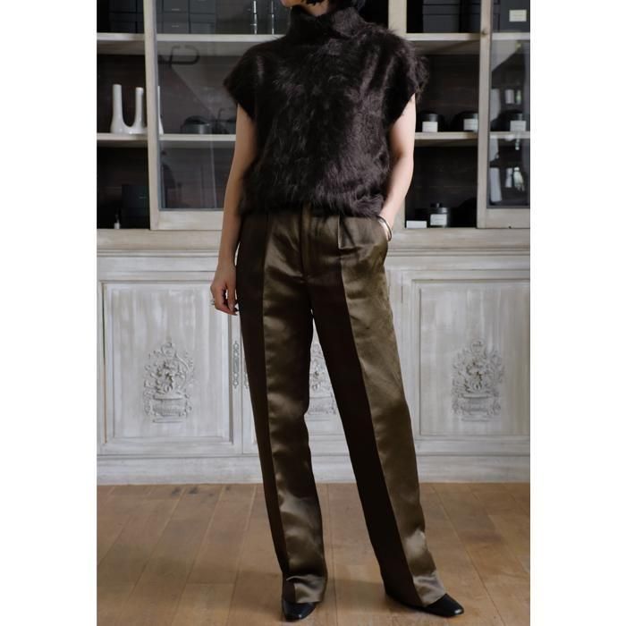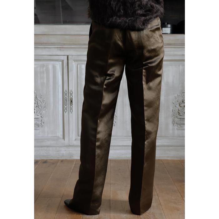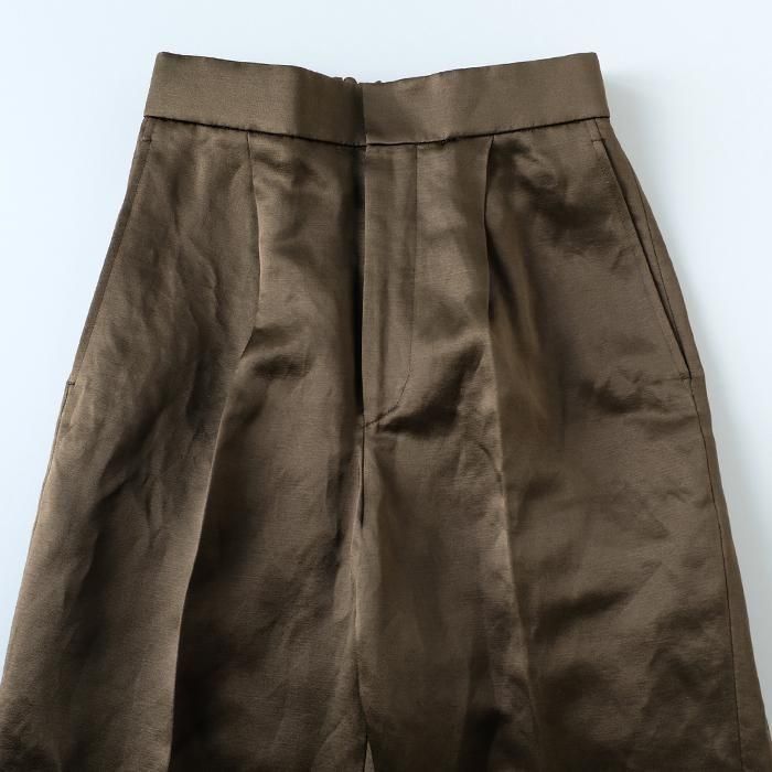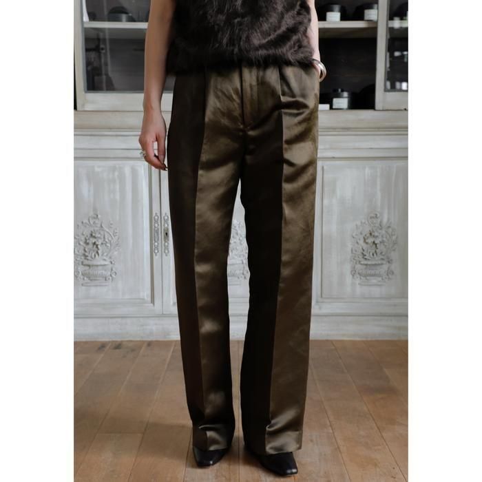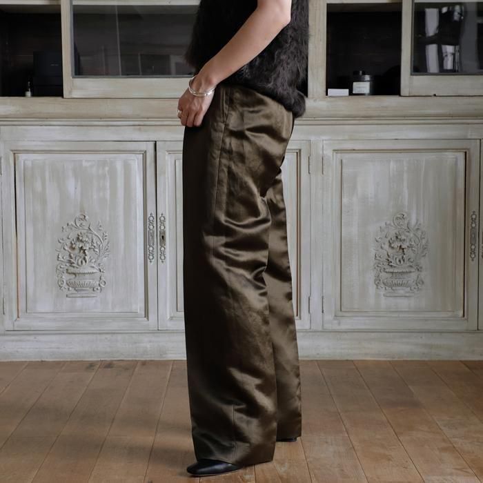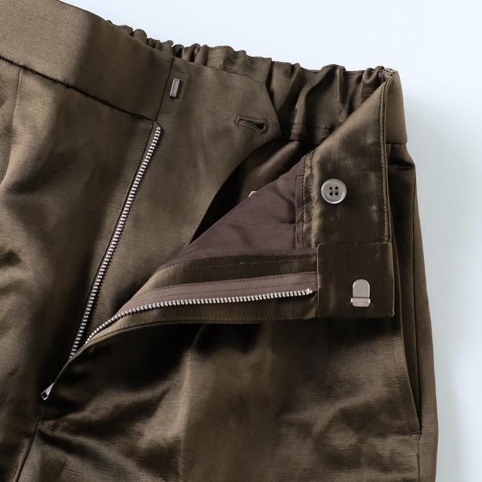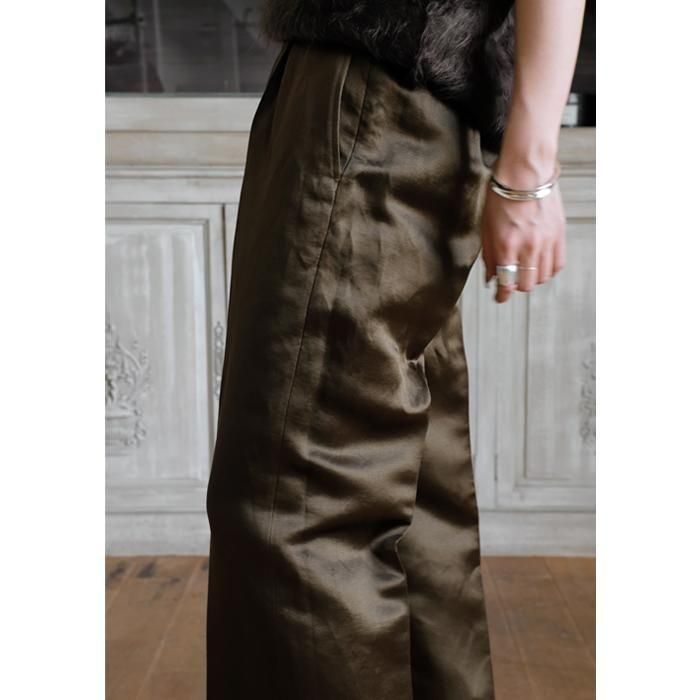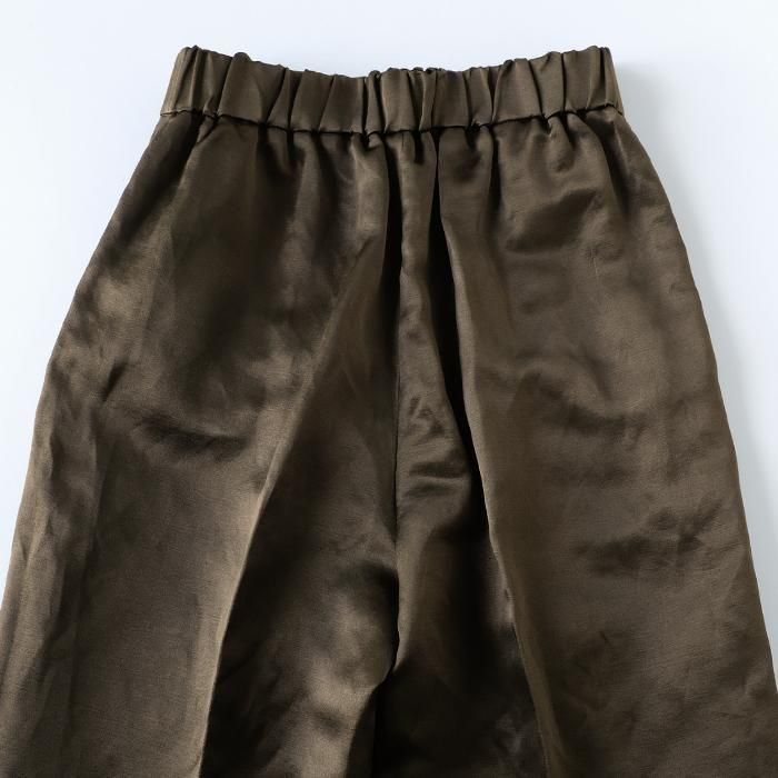 素材感を活かした上品な艶感が印象的なバックギャザーパンツ。