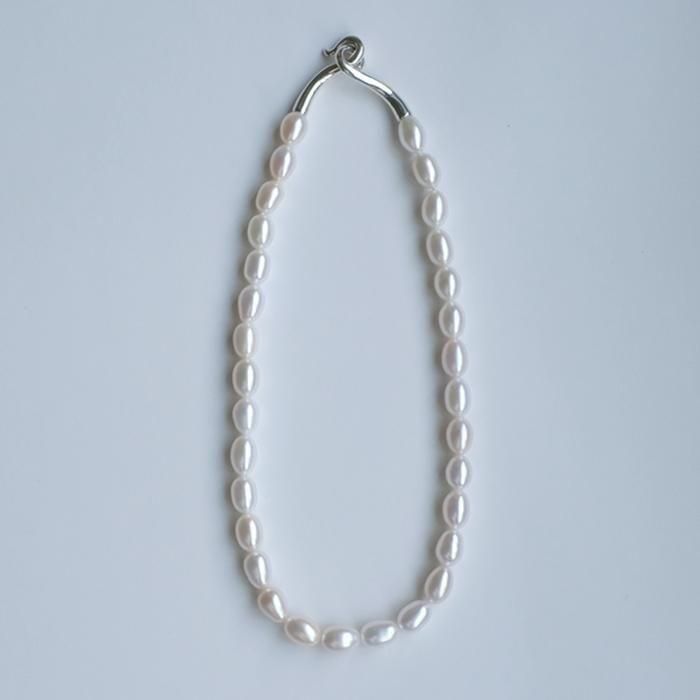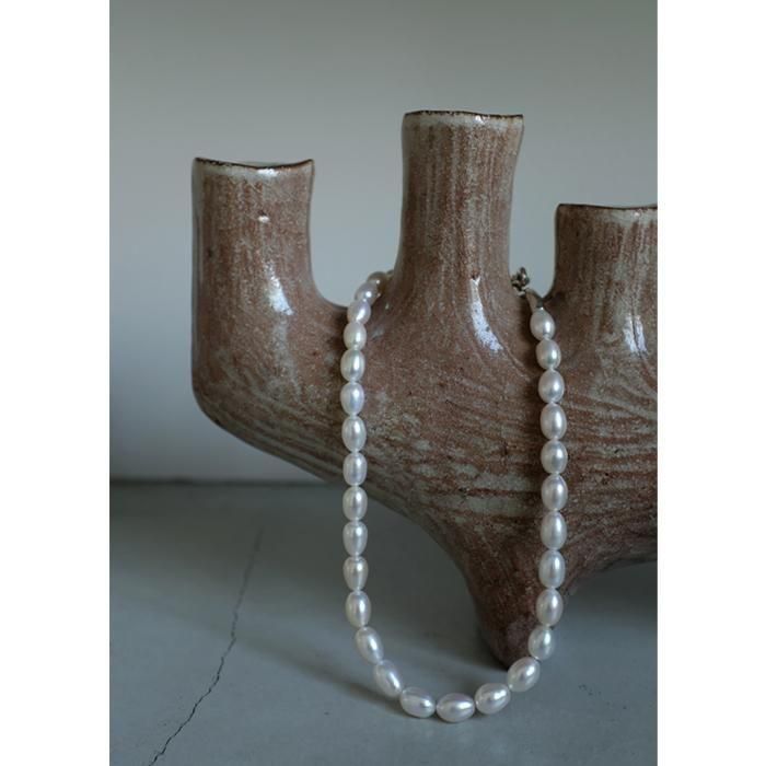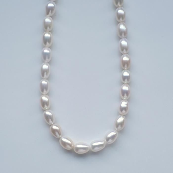 高品質なミディアムサイズの淡水オーバルパールを合わせたネックレス。
