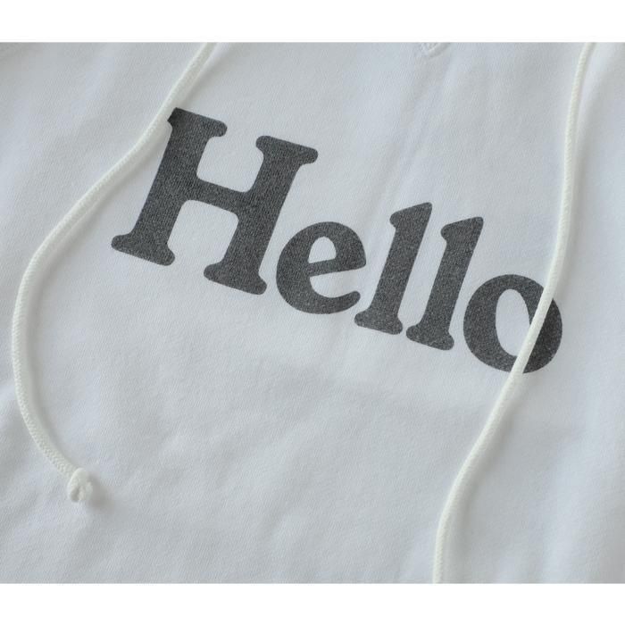 同じ生地を使用した新作、“HELLO HOODIE”。