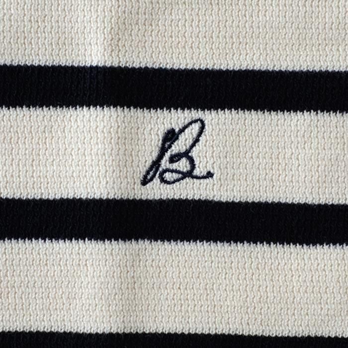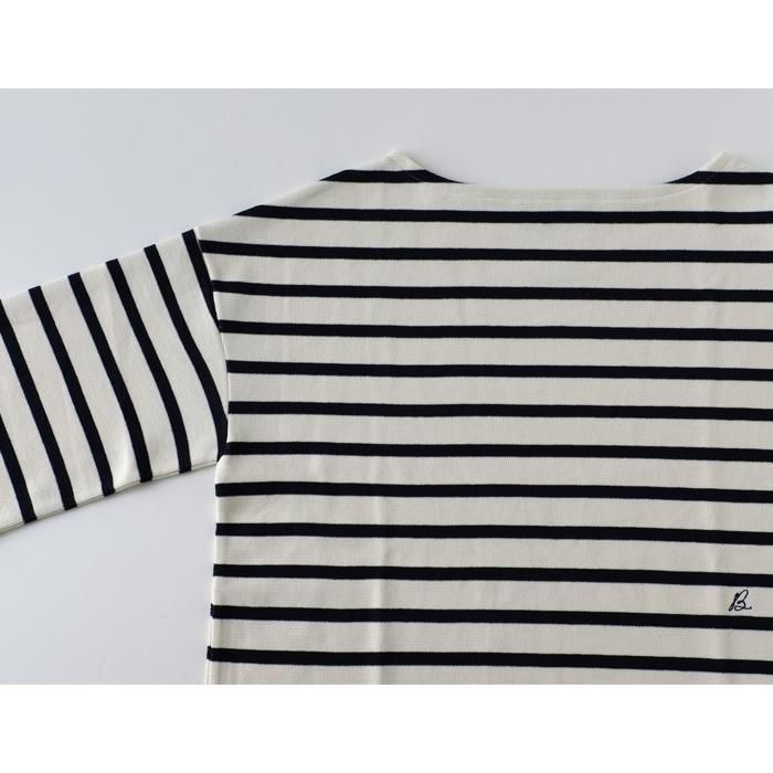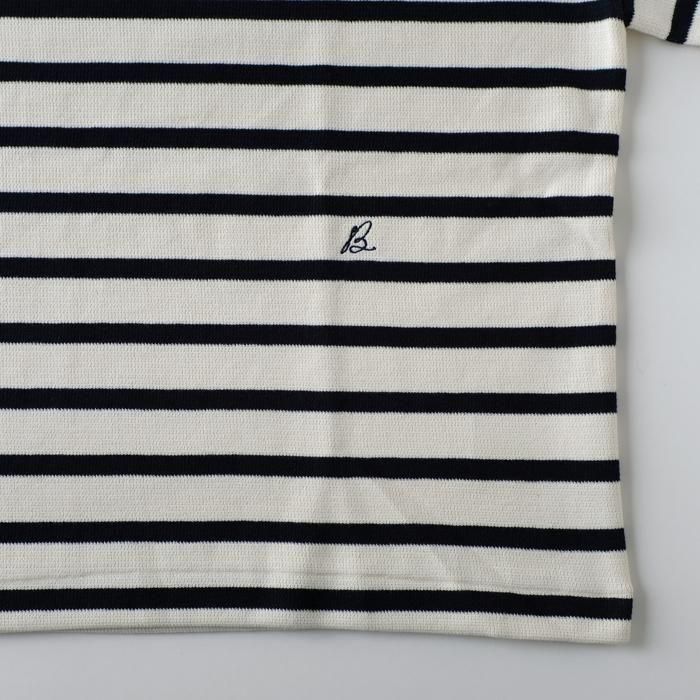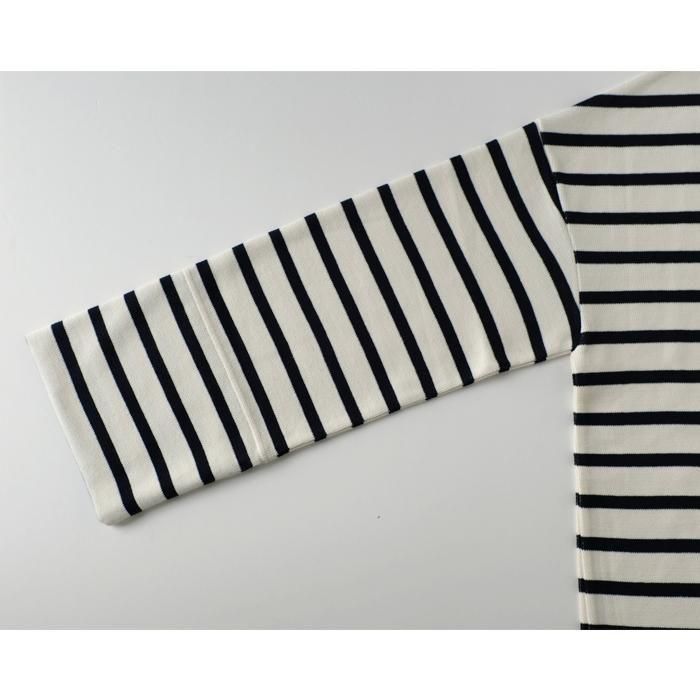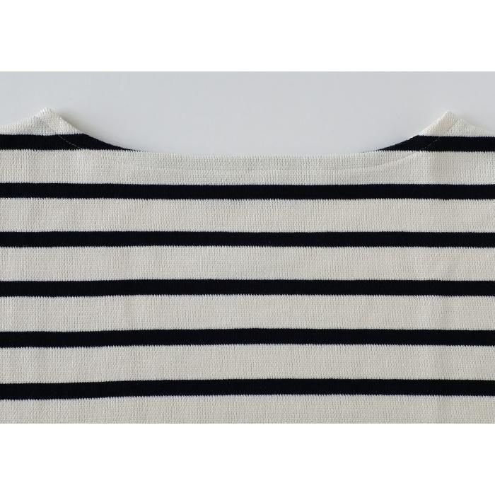 バイアス状に編まれた生地を使用したこちらのボーダートップス。