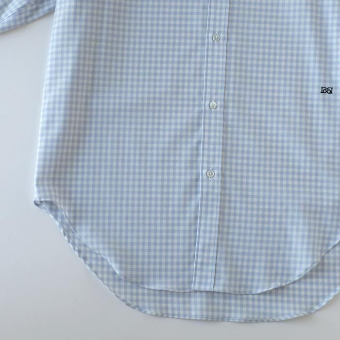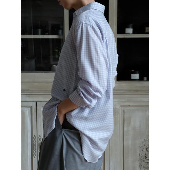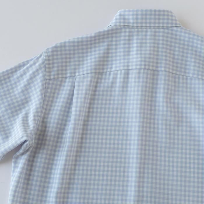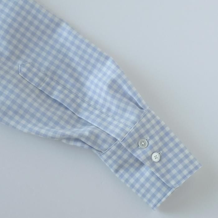 オリジナル素材を使用したこちらのギンガムチェックシャツ。