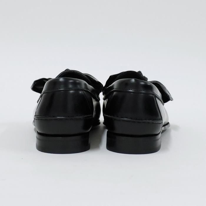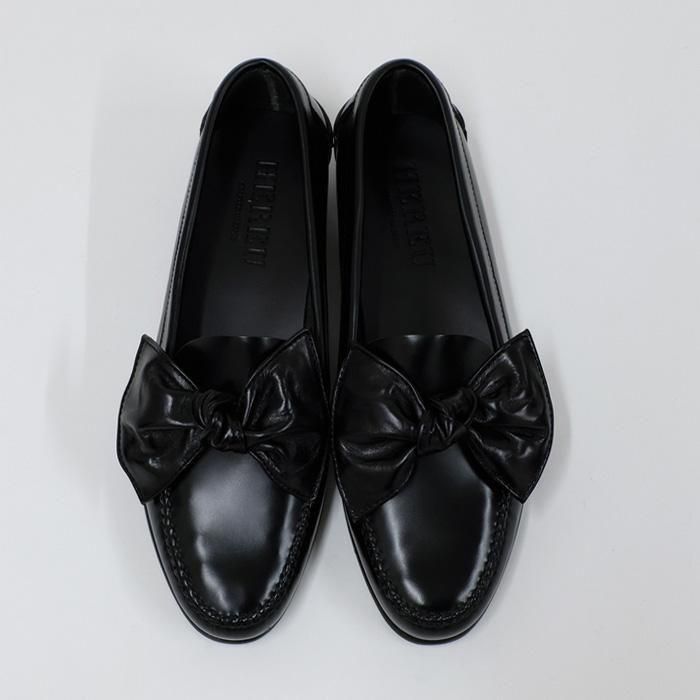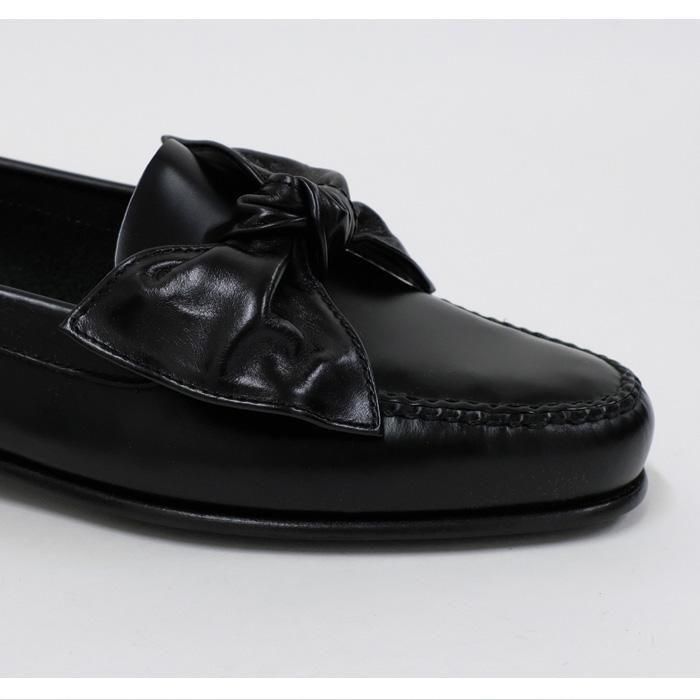 アッパーに施された大きなノットリボンが特徴的なデザインローファーです。
