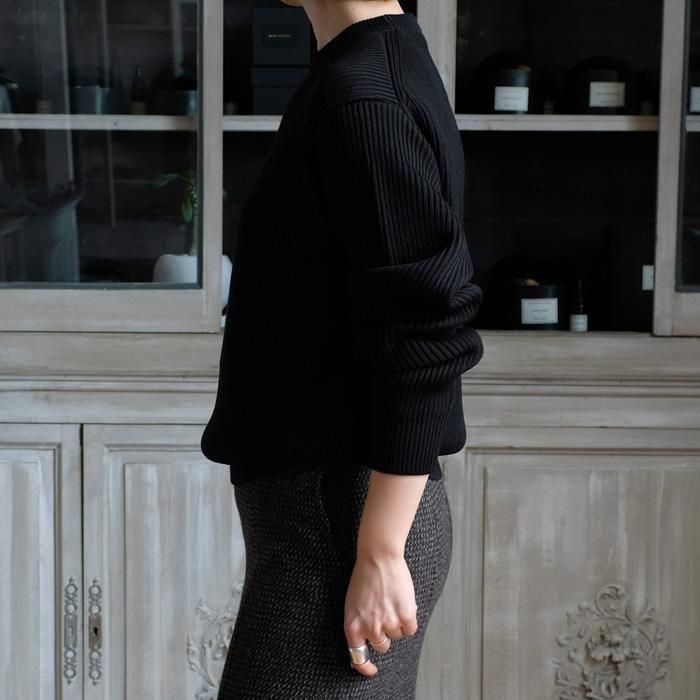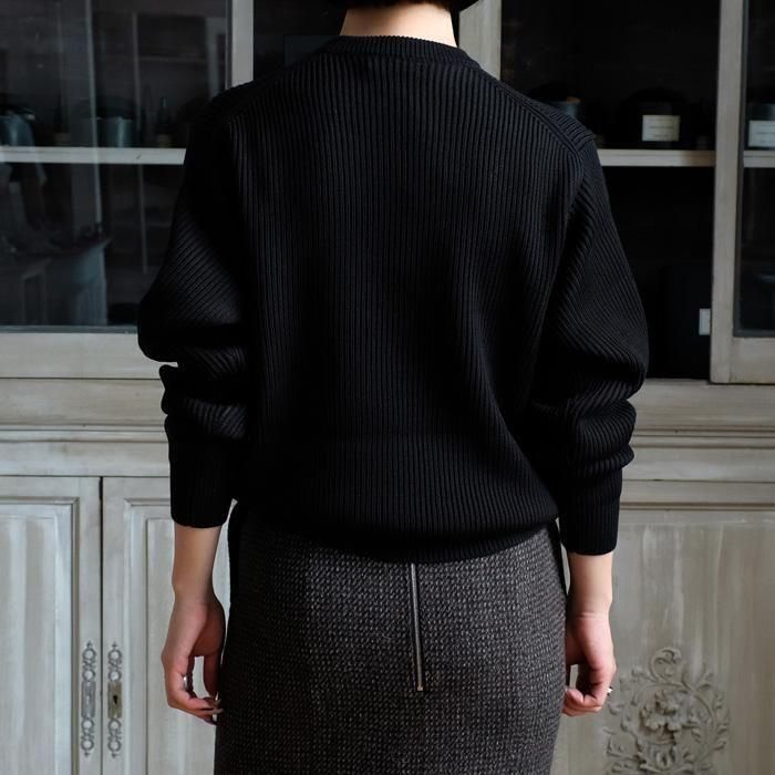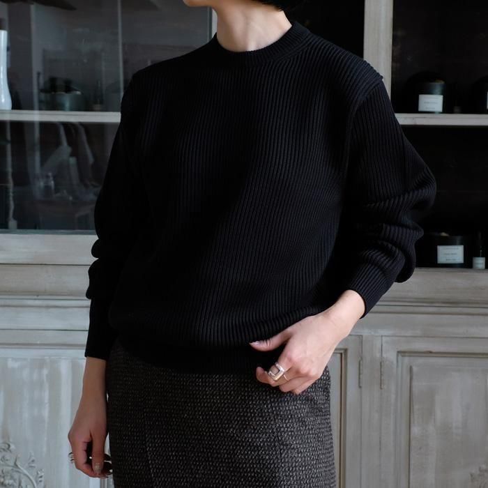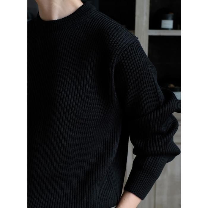 リラックスフィットのクルーネックニット。