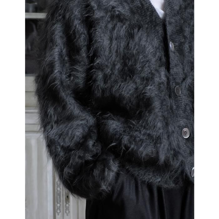 BLAMINKの冬の定番アイテム、カシミヤファーカーディガン。